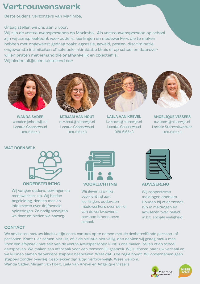 Dit betekent niet dat er bij ons nooit grensoverschrijdend gedrag plaats vindt, dat kunnen we helaas niet altijd voor zijn. Wel mag u van ons verwachten dat we actief handelen bij signalen van bijvoorbeeld pesten en respectloos gedrag. U kunt in het onderstaande document lezen welke maatregelen we dan zullen nemen. Ouderbetrokkenheid is ook op dit vlak erg belangrijk, een korte lijn tussen school en ouders maakt dat we dit samen kunnen aanpakken.